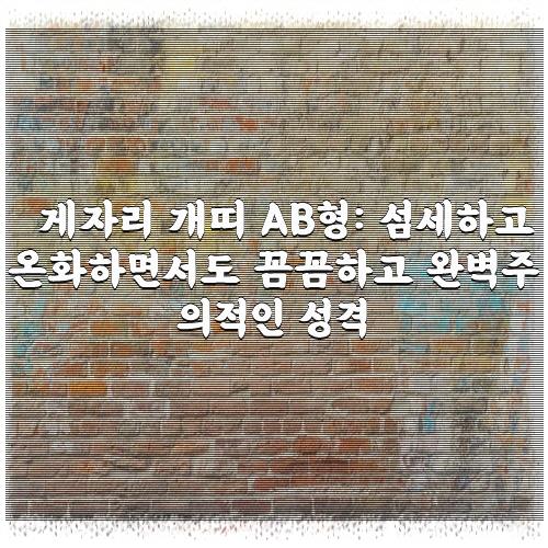 정리드린 정보는 게자리 개띠 AB형: 섬세하고 온화하면서도 꼼꼼하고 완벽주의적인 성격 관련 정리 입니다. 부디 찾으시는 분들에게 도움이 되셨길 바랍니다.💭 보면 좋은 내용 💭