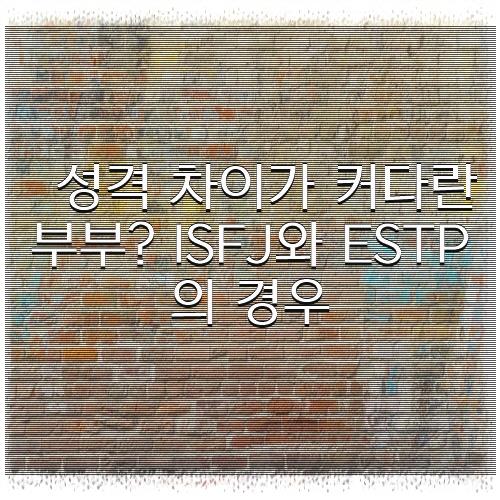 위와 같이 ISFJ와 ESTP는 성격적인 차이로 인해 결혼 생활에서 어려움을 겪을 수 있고요.