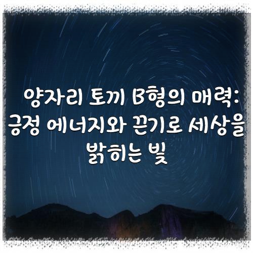양자리 토끼 B형의 매력: 긍정 에너지와 끈기로 세상을 밝히는 빛 바로 내용보시겠습니다.