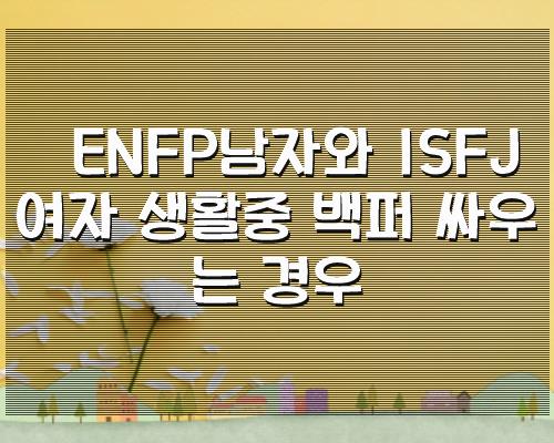 소개드린 글은 ENFP남자와 ISFJ여자 생활중 백퍼 싸우는 경우 입니다. 이 글이 찾으시는 분들에게 조금이라도 도움이 되었길바랍니다.
