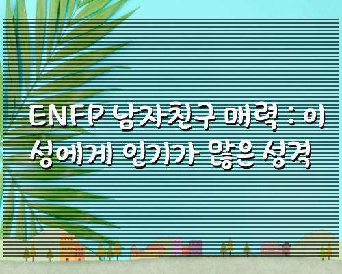 ENFP 남자친구 매력 : 이성에게 인기가 많은 성격 바로 내용보시겠습니다.