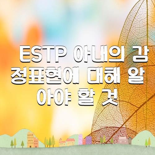 ESTP 아내의 감정표현에 대해 알아야 할 것 정리 하였습니다.